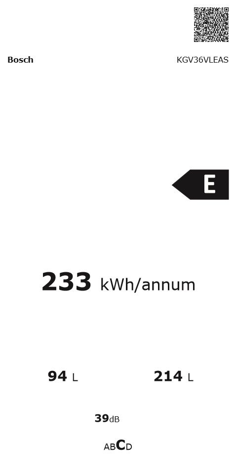 KGV36VLEAS, Prostostoječi hladilnik z zamrzovalnikom spodaj
