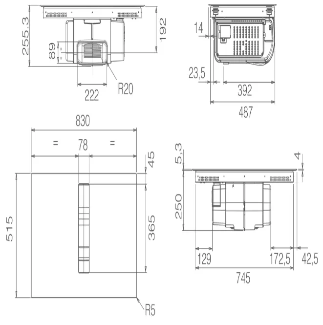 Spredaj desno: 21×19,1 cm – 1,65/1,85 kW