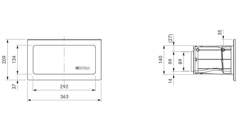 Dimenzije (Š x G x V) Pokrivna plošča 363 x 7,5 x 209 mm